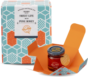 一體成形的設計,猶如含苞待放的花朵;打開禮盒的瞬間,與蜂蜜一同華麗綻放。在每次送禮的場合,都能適時地傳遞祝福與感謝。